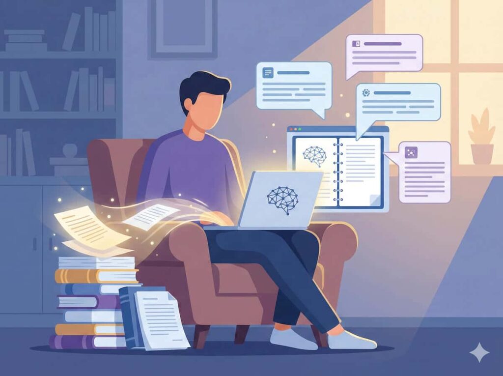 NotebookLMは、自分が持っているPDF資料やメモ、Web記事をAIに読み込ませ、その範囲内だけで質問に答えてもらうツールです。汎用的なAIと違い、「自分の知っていること」をベースに回答してくれるため、情報の正確性が極めて高いのが特徴です。