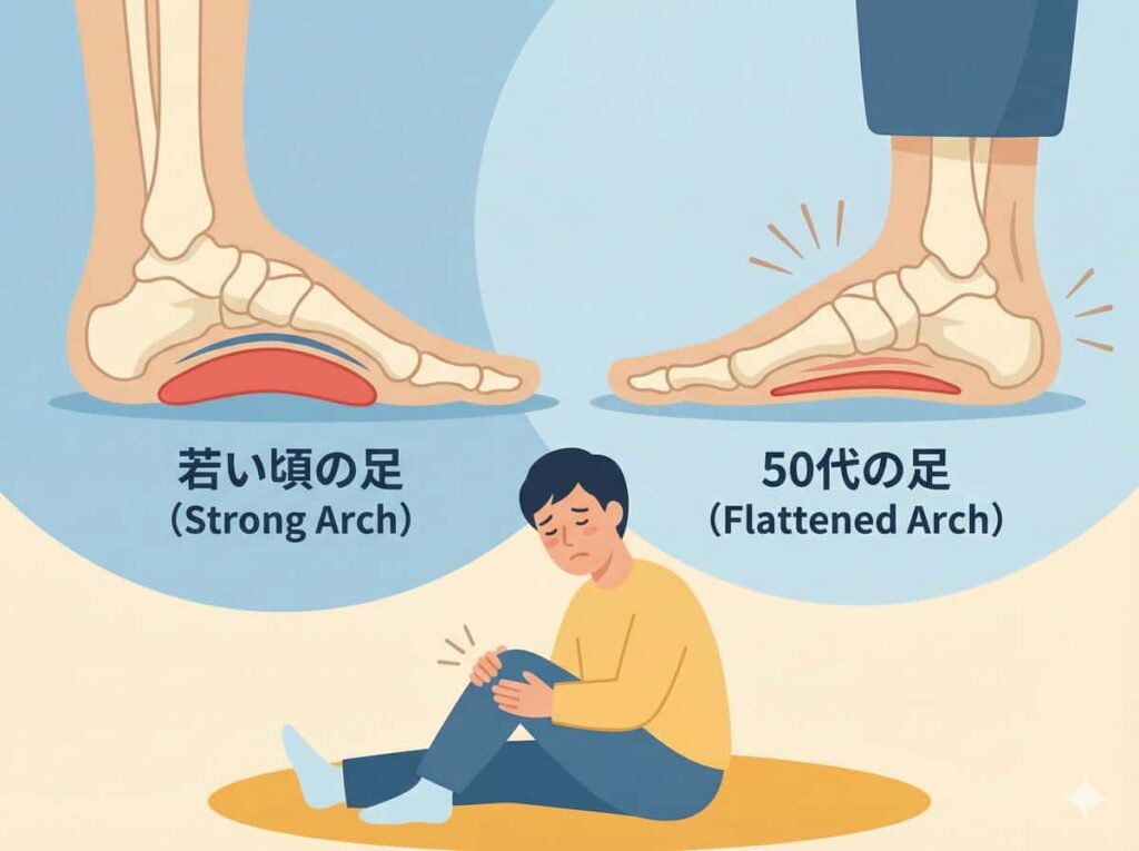 50代になると、足裏のアーチが少しずつ変わってくると言われています。
